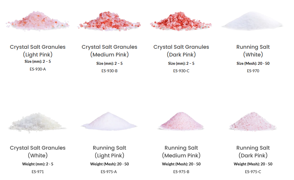 01ES-975-ARunning Salt – Light Pink20 – 50 Mesh500 gr, 1 kg, 25 kg, 50 kg, 1M.Ton Jumbo Bags